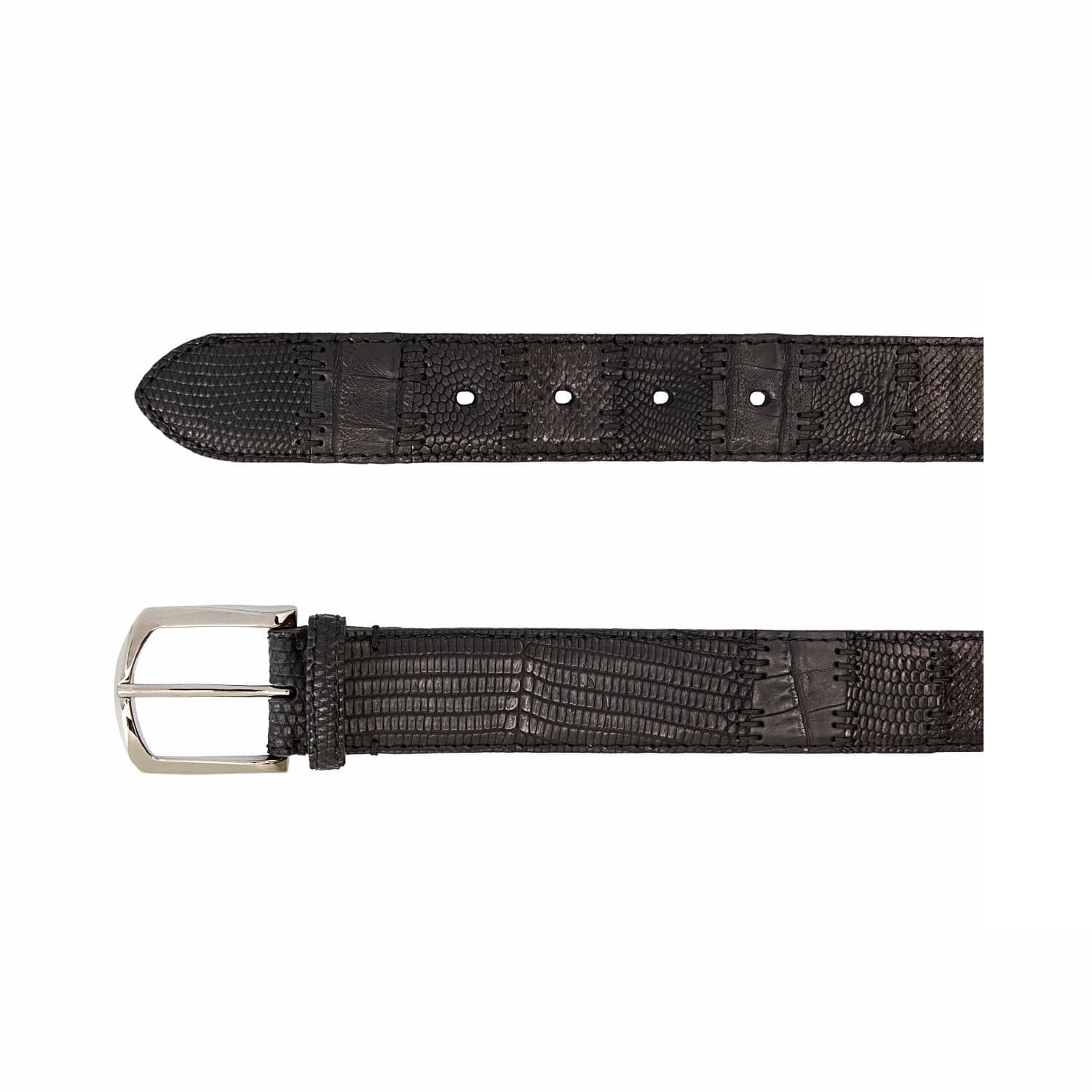 TODESCHINI COMO combines artisanal texture and modern detailing with this dark brown lizard leather belt, enhanced by subtle contrast stitching.