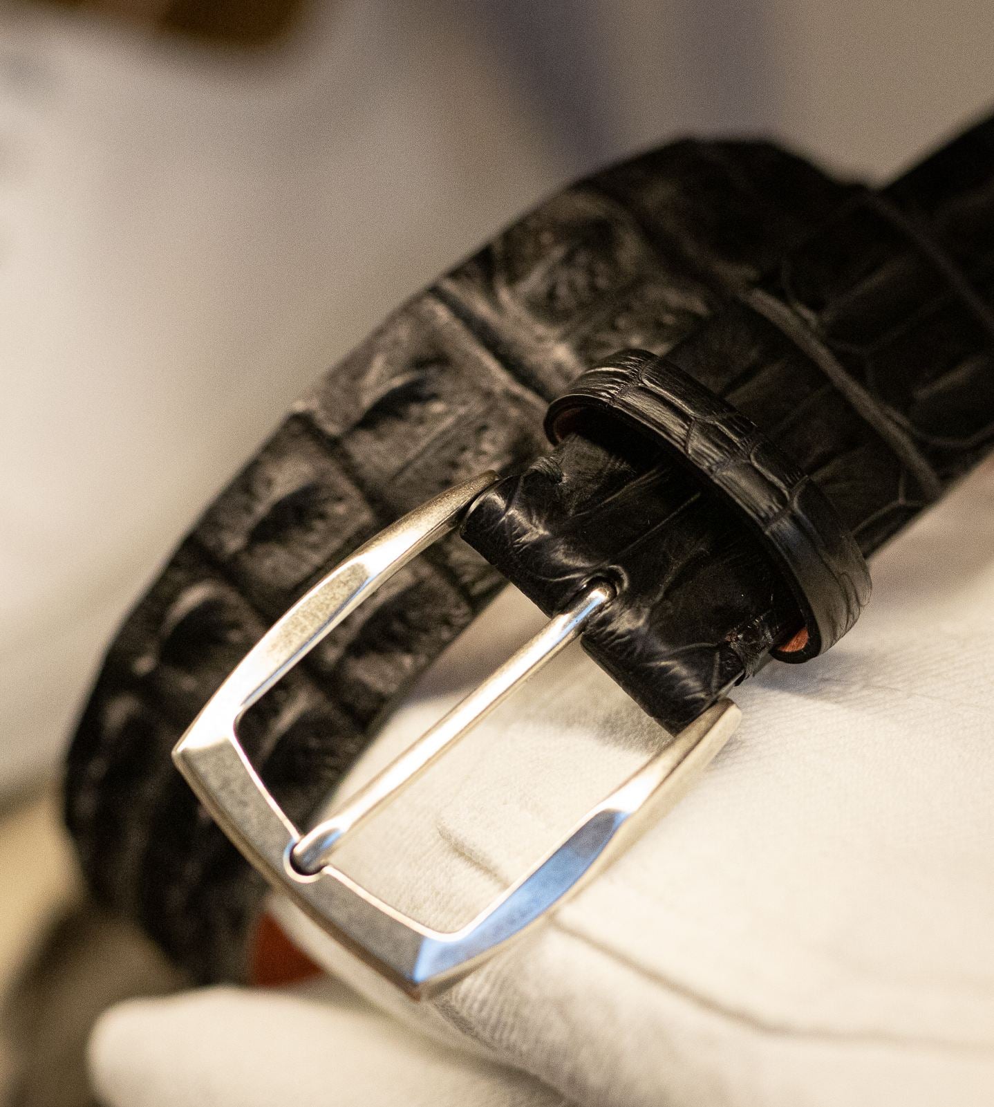 Crafted from genuine crocodile leather and handmade in Italy, these belts embody timeless sophistication and impeccable craftsmanship. Available in a curated selection of shades, each piece reflects our commitment to exceptional quality and understated luxury.